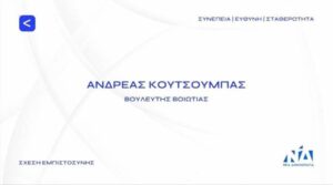 Ο Ανδρέας Κουτσούμπας, που είναι Βουλευτής της Ν.Δ. από το 2007, κατεβαίνει εκ νέου στην πολιτική μάχη ζητώντας την ψήφο των πολιτών της Βοιωτίας!