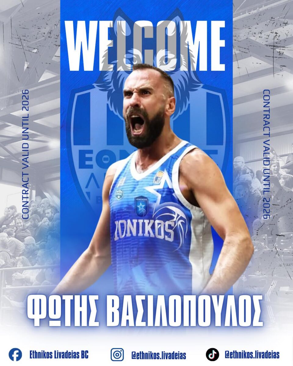 Η ανακοίνωση του Εθνικού Λιβαδειάς αναφέρει: ”Ο Εθνικός Λιβαδειάς βρίσκεται στην ευχάριστη θέση να ανακοινώσει την απόκτηση του Φώτη Βασιλόπουλου για το υπόλοιπο της φετινής αγωνιστικής περιόδου στη National League 1!